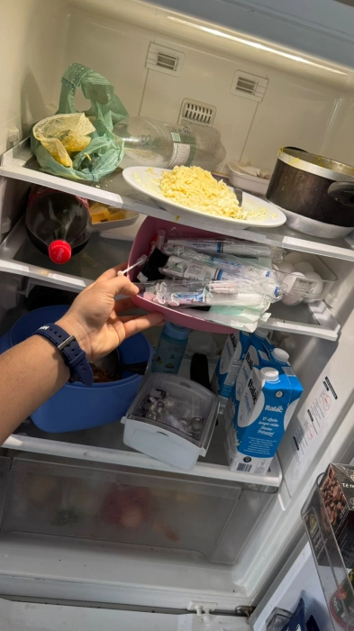 Diante da situação de flagrância e da ausência de resposta aos chamados policiais, foi necessário o arrombamento da porta. Dentro do apartamento, a equipe encontrou 124 frascos adicionais de Tizerpatida na geladeira, além de um frasco de metenolona enantato e uma caneta contendo Synedica Retatrutide, substância que sequer possui aprovação no Brasil.