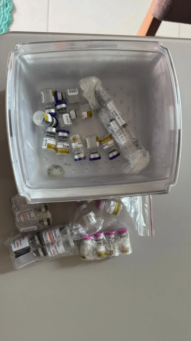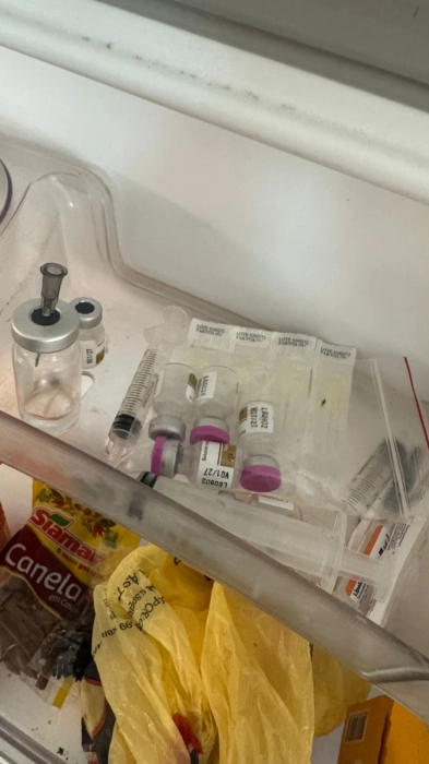 Já na tarde desta segunda-feira (17), o GENARC identificou um novo ponto de revenda de substâncias semelhantes, desta vez em uma residência situada no Setor Itaguaí II. A equipe estabeleceu contato com a investigada, que confirmou possuir o produto para venda. Ao chegar ao local, por volta das 14h30, os policiais localizaram grande quantidade de frascos e canetas emagrecedoras na geladeira da residência, incluindo T.G. Tirzepatida 5mg e 10mg, Mounjaro Tirzepatida 15mg, canetas Zepbound Tirzepatide Injection, canetas Ryval Biosciences Retatrutide 60mg, Lipoless Tirzepatida 15mg, Tirzepatida 60mg e frascos de Mounjaro, além de seringas contendo substâncias não identificadas.