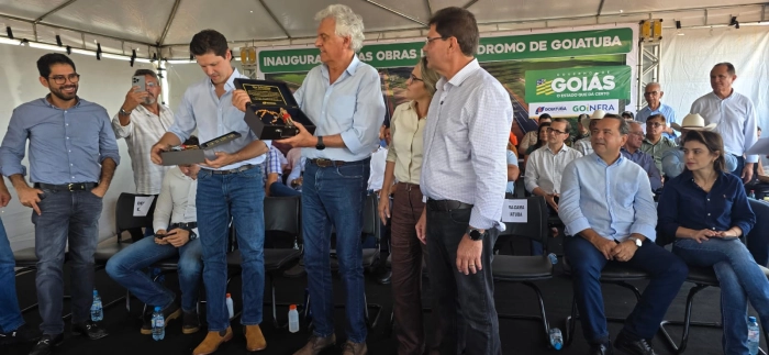 Na manhã desta segunda-feira, 16, o governador Ronaldo Caiado (PSD), inaugurou a reconstrução de toda infraestrutura do Aeródromo de Goiatuba que ganhou pavimento em CBUQ com 7,5 cm de espessura, sinalização aeroviaria, drenagem e acesso pavimentado. As obras demandaram investimentos do Governo Estadual da ordem de R$ 5 milhões.