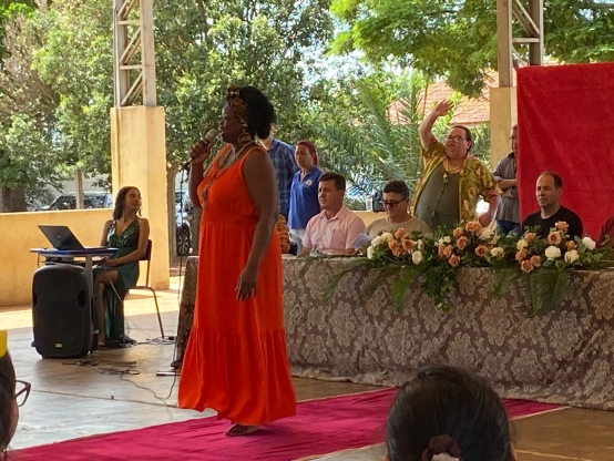 Para este evento, a coordenação do projeto convidou a líder da comunidade dos Quilombolas, Núbia Teodoro, que trouxe um pouco da realidade desses povos e sua participação no desenvolvimento do país, em especial, o Estado de Goiás, onde programas e projetos buscam valorizar e oportunizar condições de fortalecimento dos vínculos e da cultura de forma digna.