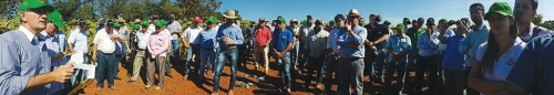 Cerca de 100 produtores participaram do evento promovido pela Spaço Agrícola, em Buriti Alegre, para apresentação dos resultados de campo do Girassol. A cultura do girassol voltou a ocupar lugar de destaque entre as culturas alternativas para a segunda safra na Região Sul de Goiás, conhecida como “safrinha”. Variedades muito bem adaptadas e ciclo de 100 dias se saíram muito bem, mesmo diante da estiagem que aconteceu no período em toda região.