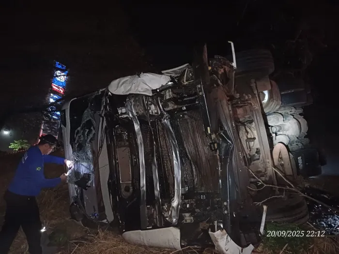 Na sequência, o caminhão ainda atingiu uma motocicleta que vinha no mesmo sentido do Nivus. O veículo de carga tombou após a colisão. O motociclista, de 42 anos, e a passageira morreram no local.